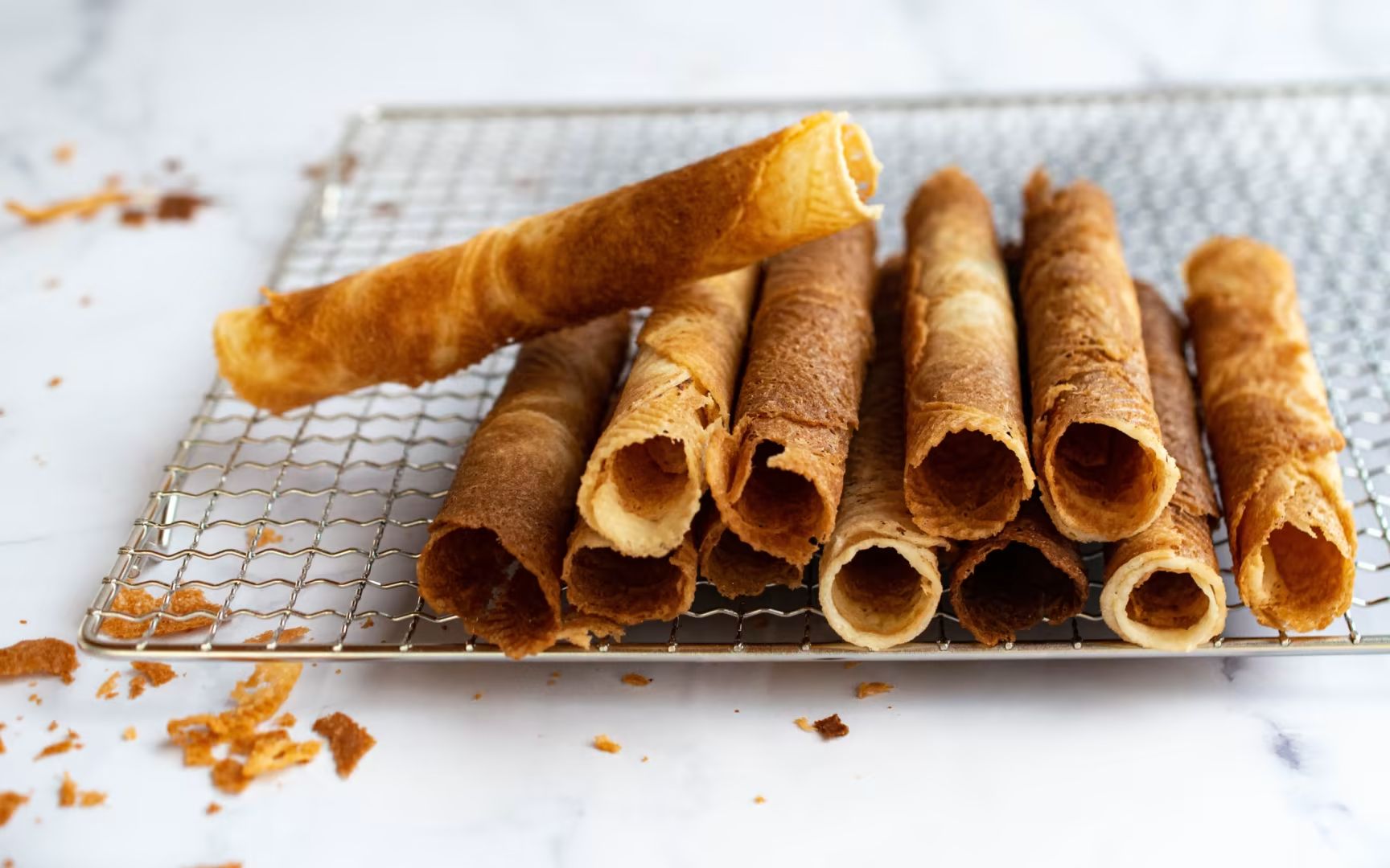 - Cette quantité suffit pour env. 45 grands bricelets au rouleaux. Former immédiatement après la cuisson